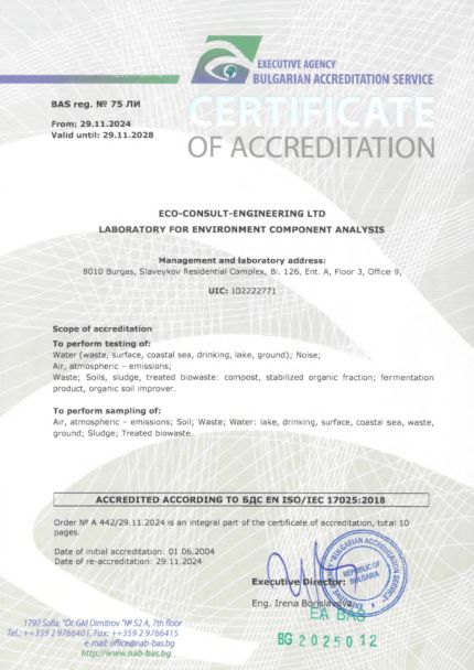 "The sampling and laboratory analyses carried out by ECO-CONSULT ENGINEERING were conducted by qualified and competent specialists with extensive experience and in accordance with the regulatory requirements" Krasimir Kanev, Human Resources Director